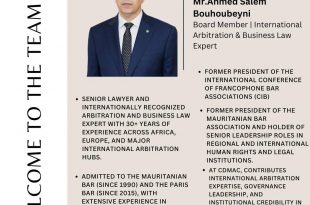 الأستاذ”أحمد سالم بوحبيني” يعلن عن التحاقه كخبير وعضو بإدارة المركز الدولي للوساطة والتحكيم وتسوية المنازعات