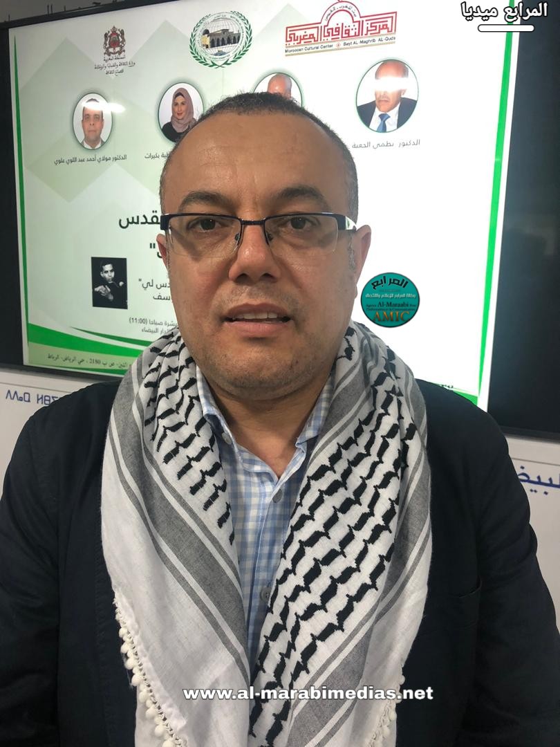 كما التقي موفدنا إلي المعرض الدولي للنشر والكتاب بالدكتور محمد سالم الشرقاوي مدير عام وكالة بيت مال القدس الشريف في المملكة المغربية الشقيقة علي هامش ندوة صباح اليوم بعنوان / حضور المغاربة في القدس”الرموز والدلالات” الذي أكد أن العالم بات يدرك جيدا أن العرب والكثير من شعوب العالم الأخرى يتمسكون مهما كانت الظروف بالقضية الفلسطينية ويرفعونها تاجا علي رؤوسهم باستمرار وأضاف الدكتور الشرقاوي أيضا أن جهود وكالة بيت مال القــدس تدفع قدمـــا بإشعاع هـذه الوكالــــة والترويـــج لتحقيق أهدافها في الحفاظ علـى المدينـة المقدسـة وحمايـة موروثها الديني والحضاري ودعم صمود المقدسيين…..وهو مسار تضامني عنوانه القدس والمقدسيين….