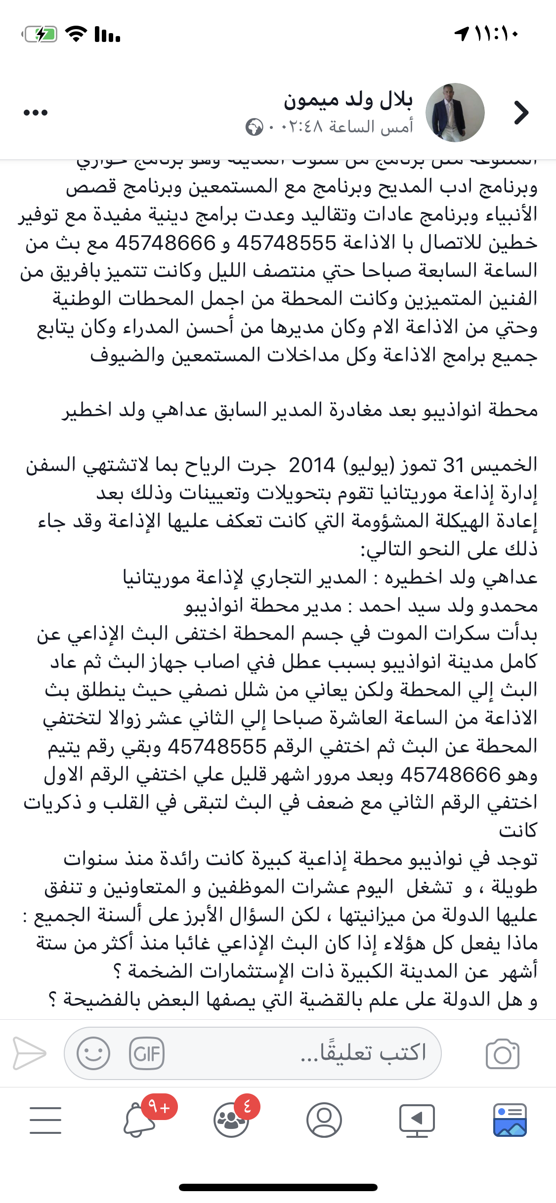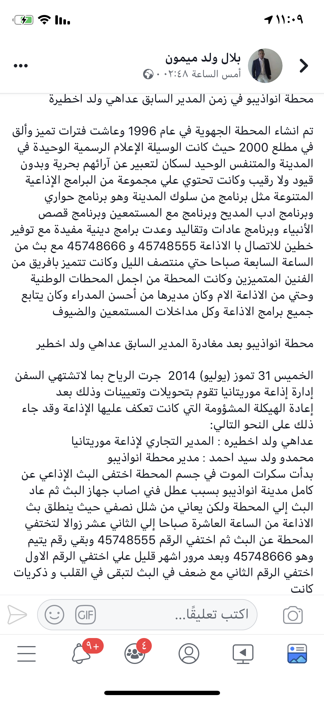 الخميس 31 تموز (يوليو) 2014 جرت الرياح بما لاتشتهي السفن إدارة إذاعة موريتانيا تقوم بتحويلات وتعيينات وذلك بعد