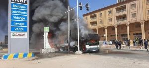 ألتهمت النيران قبل قليل باصا لنقل طلاب الجامعة أمام فندق موري سانتر وسط العاصمة نواكشوط
