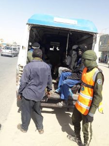 وتظهر الصور عناصر من أمن الطرق ، وهم ينزلون الركاب من وسائل النقل حتى لايقع الاكتظاظ لما يترتب عليه من خطورة انتقال عدوى فيروس كورونا الذي يشهد حاليا موجة انتشار غير مسبوقة في البلد .