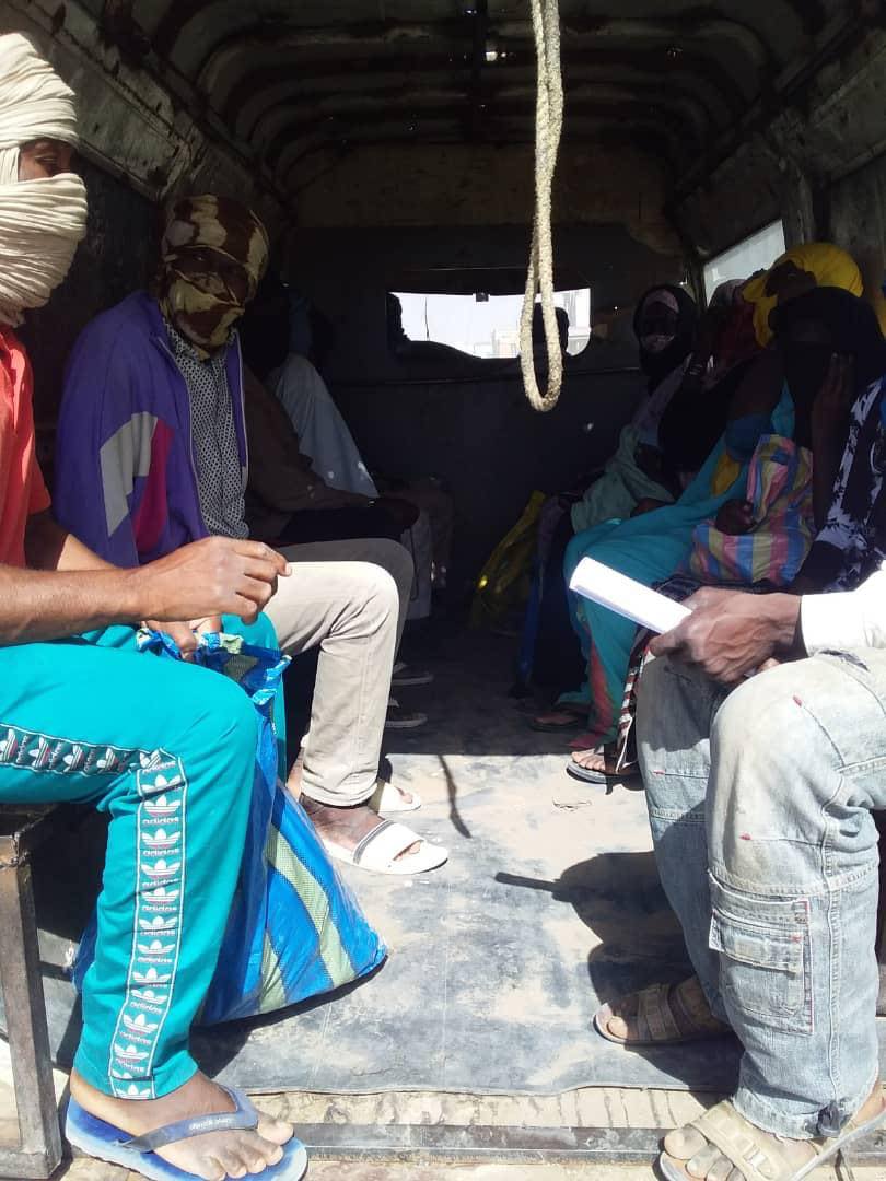 وتظهر الصور عناصر من أمن الطرق ، وهم ينزلون الركاب من وسائل النقل حتى لايقع الاكتظاظ لما يترتب عليه من خطورة انتقال عدوى فيروس كورونا الذي يشهد حاليا موجة انتشار غير مسبوقة في البلد .
