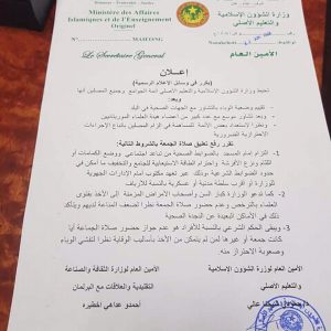 أعلنت وزارة الشؤون الإسلامية والتعليم الأصلي إنها تحيط أئمة الجوامع وجميع المصلين أنها قررت رفع تعليق صلاة الجمعة.