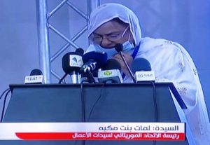 قالت لمًات بنت مكيًه رئيسة الاتحاد الموريتاني لسيدات الأعمال،إن رائدات الأعمال في موريتانيا، ينتظرن ثمار الاستراتيجيات والسياسات التي تبنتها حكومة الوزير الأول المهندس اسماعيل ولد ابده ولد الشيخ سيديا،مؤكدة أنهن ينظرن بكثير من الأمل إلى استيراتيجيات الحكومة وسياساتها حول الترقية النسوية.
