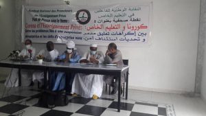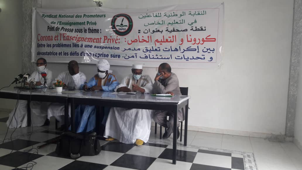 قالت النقابة الوطنية للفاعلين في التعليم الخصوصي، إن وضعية المدارس الخاصة أصبحت كارثية بسبب تراكم الأعباء على أصحابها بعد إثر التوقف الطويل لستة أشهر. جراء جائحة كورونا، حسب ما صرح به الامين العام محمد المختار ولد محمدو، في مؤتمر صحفي للنقابة.