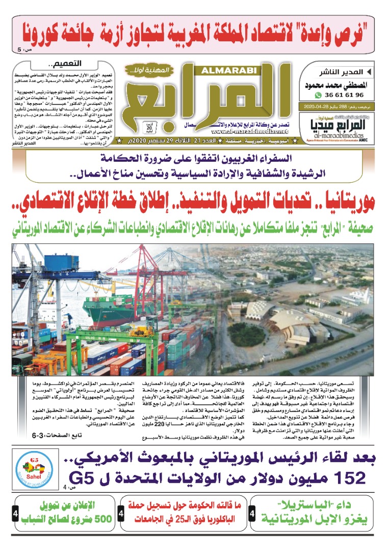 صحيفة ” المرابع” تنجز ملفا متكاملا حصريا عن رهانات الإقلاع الاقتصادي وانطباعات الشركاء عن الاقتصاد الموريتاني