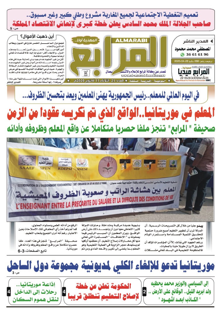 حصري: صحيفة ” المرابع” تنجز ملفا حصريا متكاملا عن واقع المعلم وظروفه وأدائه.