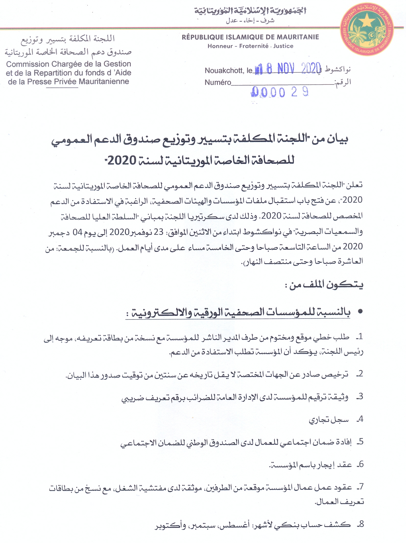 لجنة تسيير صندوق دعم الصحافة تعلن فتح باب اللاستفادة من الصندوق “وثيقة”