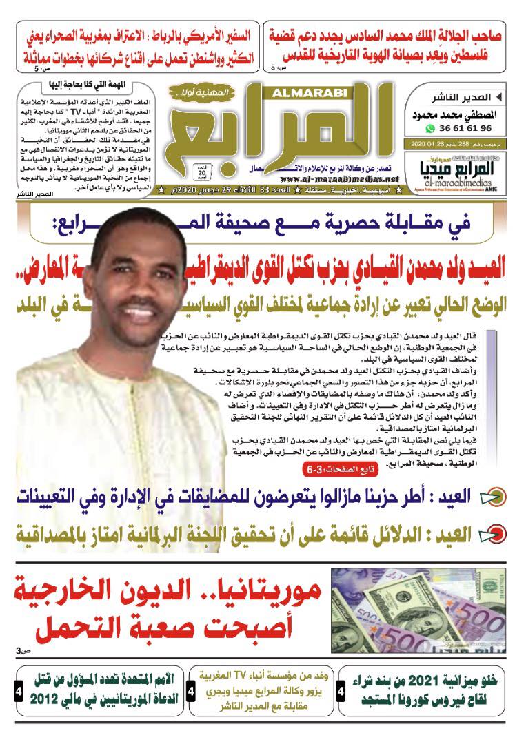 فيما يلي نص المقابلة التي خص بها العيد ولد محمدن القيادي بحزب تكتل القوى الديمقراطية المعارض والنائب عن الحزب في الجمعية الوطنية ، صحيفة المرابع.