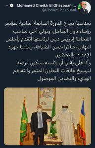 وكان ئيس الجمهورية قد سلم الرئاسة الدورية لمجموعة الساحل، أمس، للرئيس اتشادي إدريس ديبي