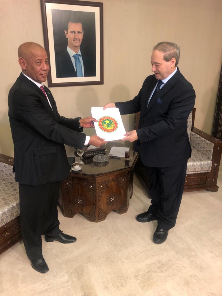 قدّم سعادة سفيرنا في الجمهورية العربية السورية الشقيقة السيد أحمدو ولد إدي ولد محمد الراظي صباح اليوم أوراق اعتماده إلى وزير الخارجية الدكتور فيصل المقداد