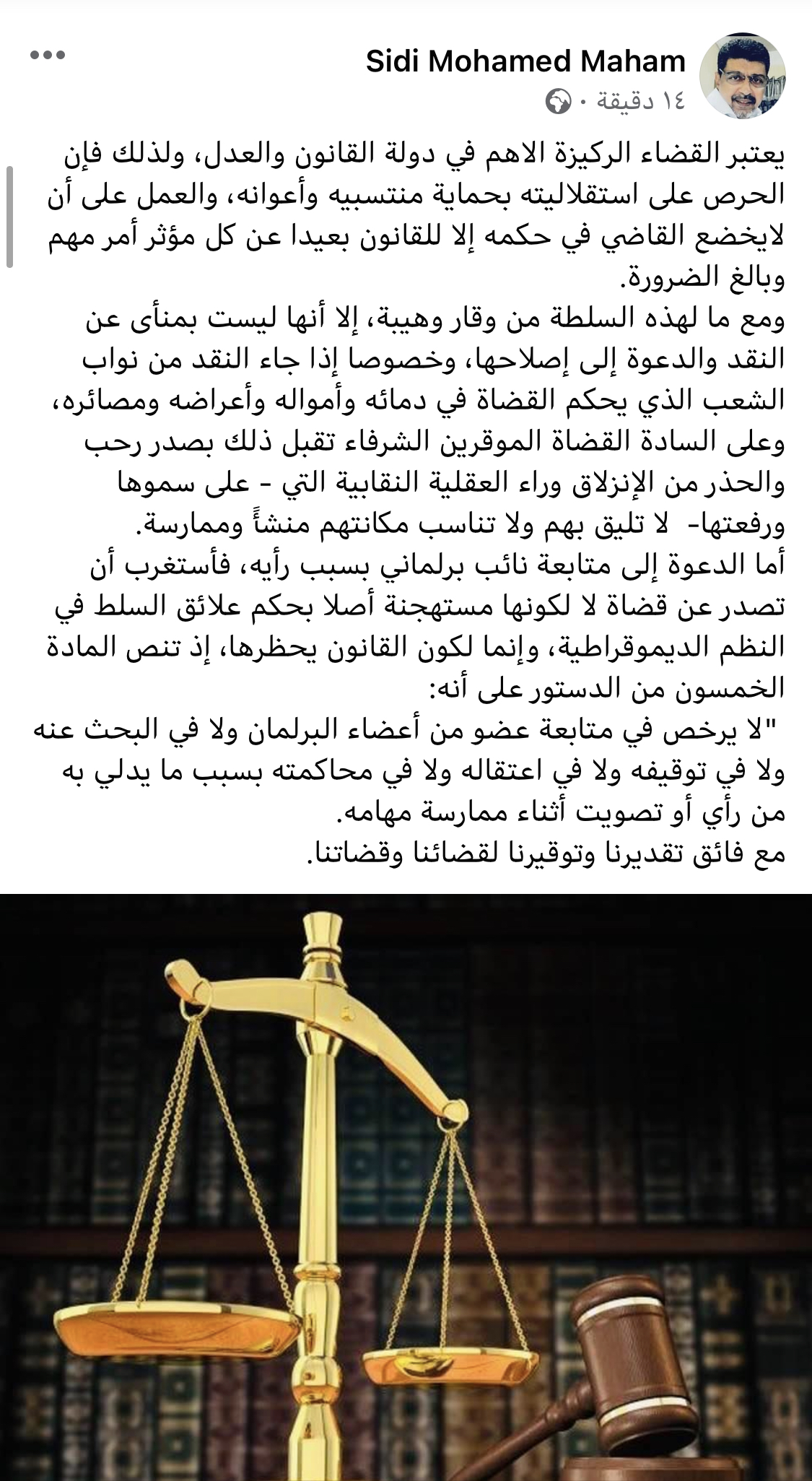 وكتب وزير الثقافة الناطق الرسمي باسم الحكومة السابق الأستاذ سيدي محمد ولد محم تدوينة علي حسابه في الفيس بوك قائلا :