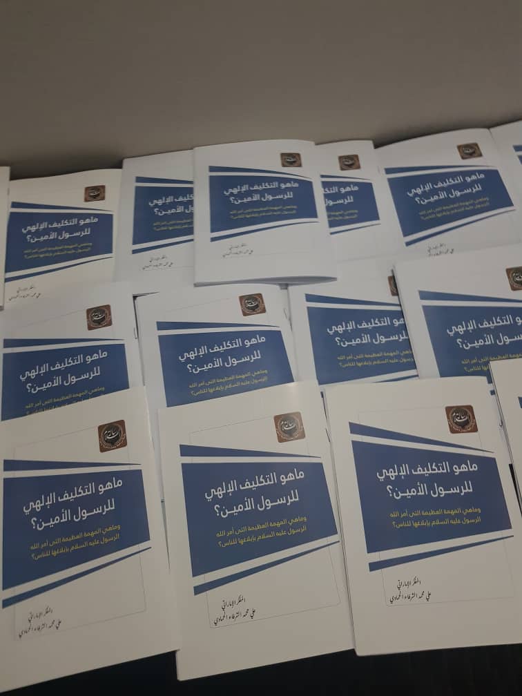ووزعت على هامش الندوة نسخ من كتاب “ماهو التكليف الإلهي الذي أمر الله به رسوله الأمين” للمفكر علي محمد الشرفاء الحمادي..
