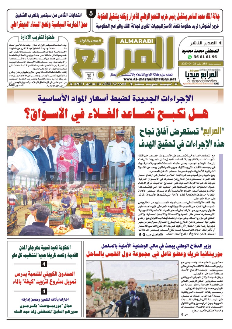 استعرض العدد ال 62 من صحيفة “المرابع” الصادر اليوم الثلاثاء الـ14 سبتمبر الإجراءات الجديدة التي اتخذتها الحكومة بهدف خفض الغلاء وضبط أسعار المواد الأساسية.