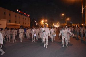 وشاركت في المسيرة تشكيلاتٌ من كتيبة القيادة والخدمات وموسيقى القوات المسلحة.