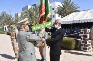وقال معالي وزير الدفاع الوطني مخاطبا الضباط وضباط الصف والجنود، بأمر من فخامة رئيس الجمهورية، القائد الأعلى للقوات المسلحة عليكم ان تأتمروا بقائدكم الفريق المختار ولد بله الماثل أمامكم وأن تطيعوه في كل ما يأمركم به طبقا للقوانين والنظم المعمول بها.