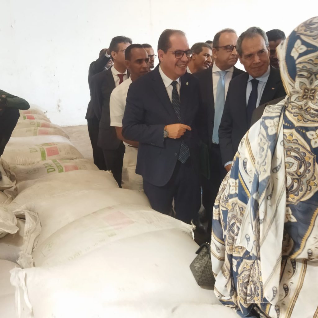 وأضاف أن هذه الهبة التي تمنحها اليوم مجموعة المكتب الشريف للفوسفاط، التي تعتبر الرائد العالمي في المنتجات الفوسفاطية المخصصة للتغذية النباتية والحيوانية، ستساهم لا محالة في تعزيز ودعم القطاع الزراعي والمزارعين في موريتانيا الذي يوليه فخامة رئيس الجمهورية السيد محمد ولد الشيخ الغزواني اهتماما كبيرا ويضعه في صلب سياسات التنمية للبلاد.