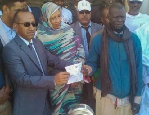 وأشرفت المفوضة بذات المناسبة من مخزن المفوضية بمقاطعة تيشيت على إطلاق عملية توزيع مواد غذائية مجانية.