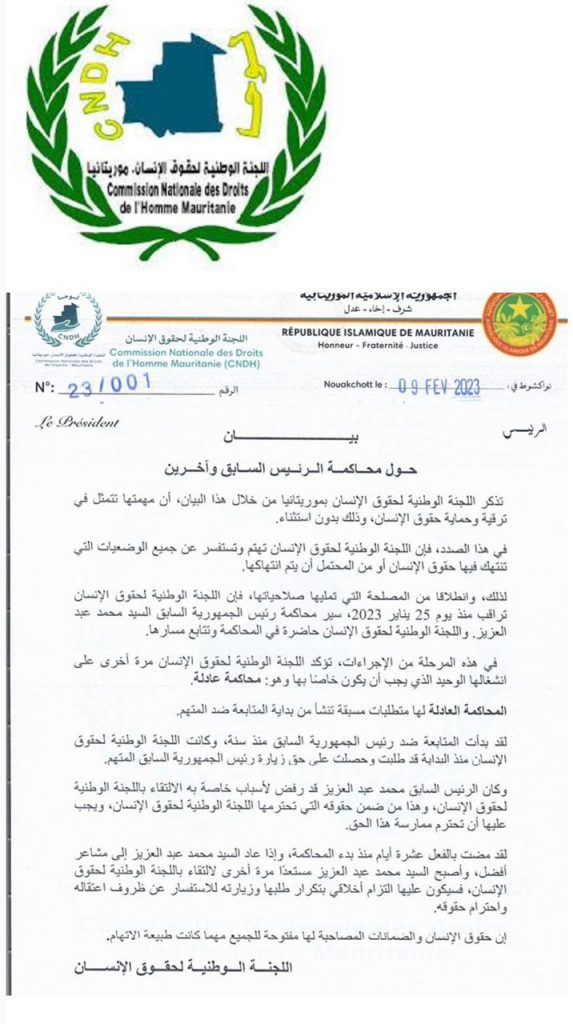 وأضافت اللجنة في بيان “حول محاكمة الرئيس السابق وآخرين” أنه انطلاقا من المصلحة التي تمليها صلاحياتها فإن اللجنة تراقب منذ 25 يناير 2023 سير هذه المحاكمة وأن انشغالها الوحيد الذي يجب أن يكون خاصا بها وهو المحاكمة العادلة.