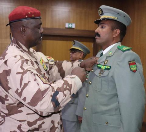 وشح اللواء عمر بكيمو قائد القوة المشتركة لمجموعة الخمس في الساحل اليوم 16فبراير 2023،في قاعة المؤتمرات بقيادة الأركان العامة للجيوش، مجموعة من الضباط وضباط الصف الموريتانيين، وذلك بمناسبة انتهاء فترة عملهم في القوة المشتركة لمجموعة الخمس في الساحل.