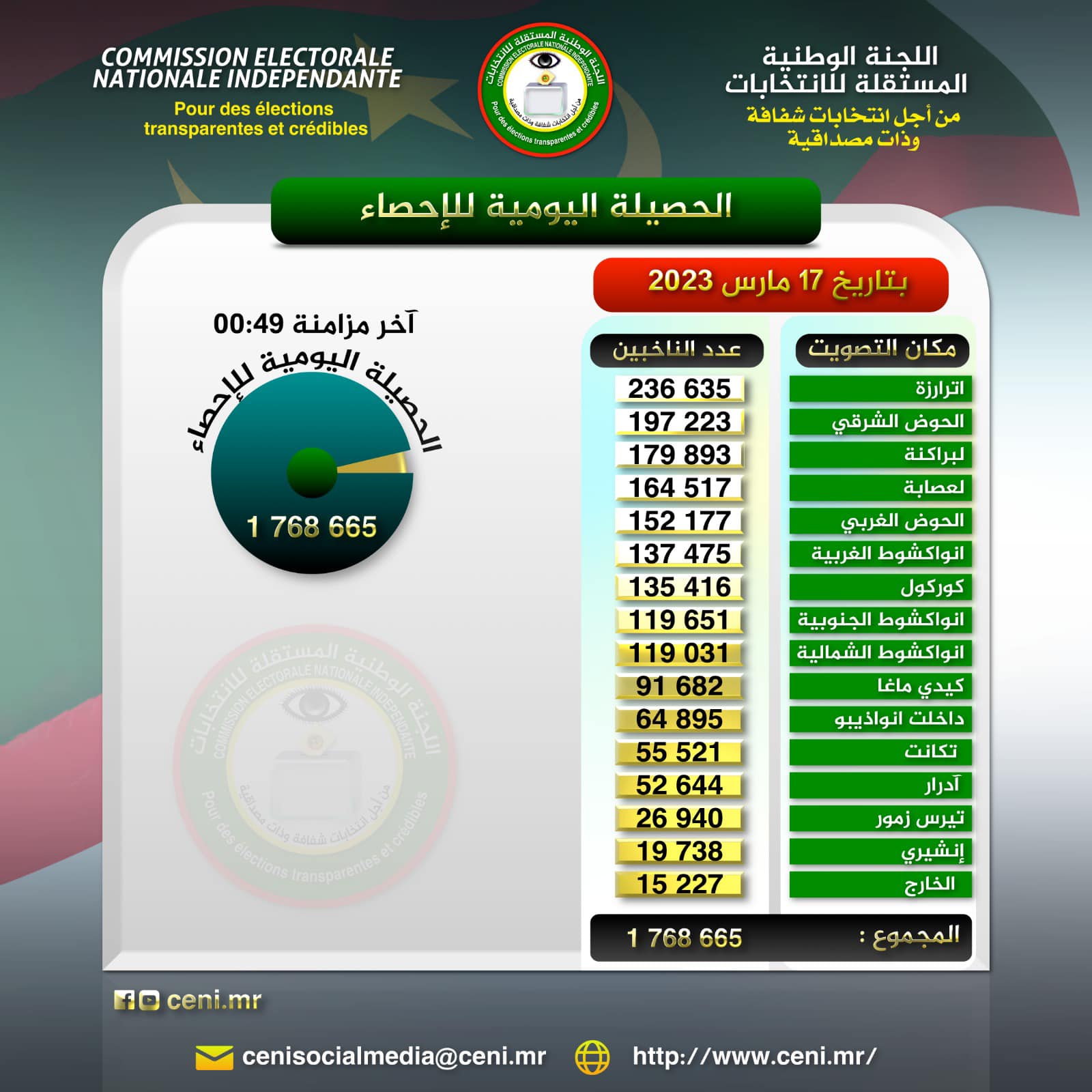 أعلنت اللجنة الوطنية المستقلة للانتخابات، في إيجاز أصدرته اليوم، وصول عدد المسجلين على اللائحة الانتخابية 1768665 ناخبًا، موزعين بين ولايات الوطن، والجالية في الخارج.