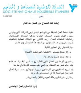 وأضاف البيان أنه «ستجرى القرعة بين العمال الذين أكملوا 12 سنة من الأقدمية، عند فاتح يناير، ولم تسبق لهم الاستفادة من الحج على حساب الشركة بأي طريقة».