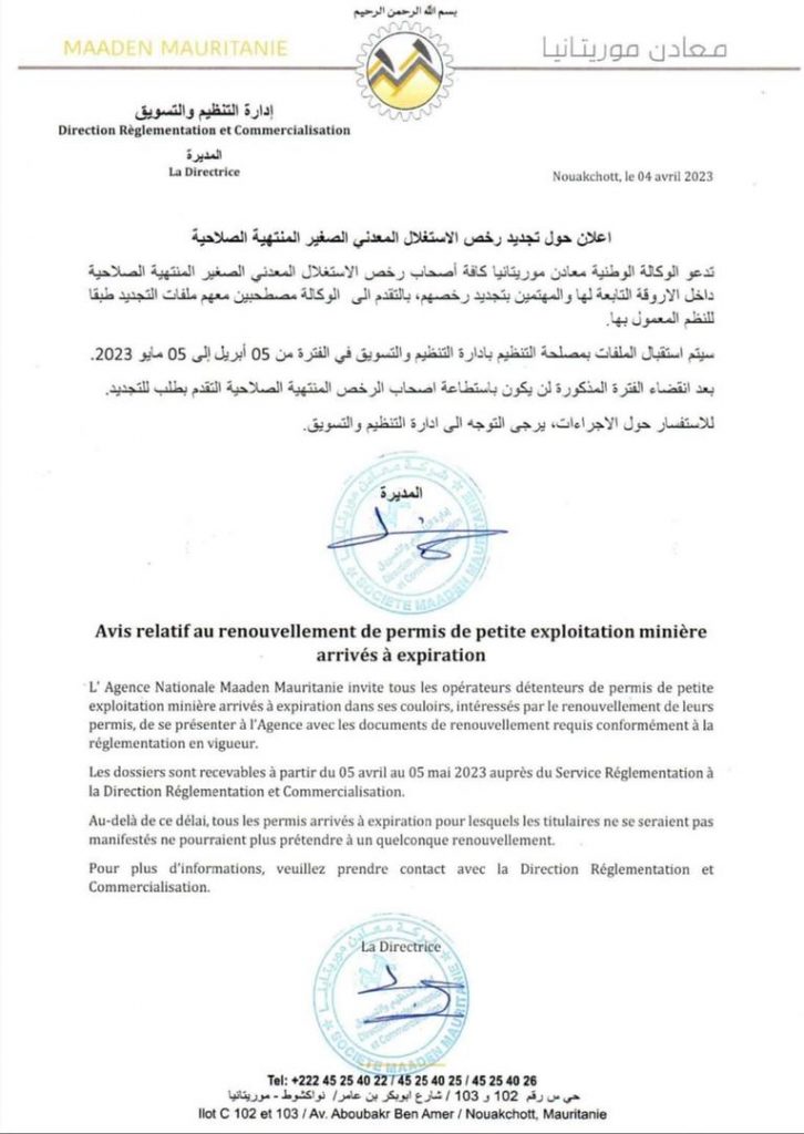 معادن موريتانيا: إعـــــلان حول تجديد رخص الاستغلال المعدني الصغير المنهية الصلاحية