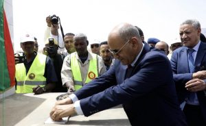 أشرف معالي وزير التجهيز والنقل الناطق باسم الحكومة السيد الناني ولد أشروقه اليوم الثلاثاء في نواكشوط على حفل نظمته سلطة تنظيم النقل بمناسبة وضعها حجر أساس لإنشاء أربع محطات طرقية وخمسة مراكز لوزن الشاحنات.