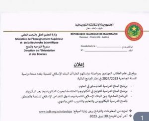 أفادت وزارة التعليم العالي والبحث العلمي أن البنك الإسلامي للتنمية يقدم منحا دراسية للسنة الجامعية 2023/2024؛ داعية الطلاب المهتمين بمواصلة دراساتهم العليا لنيل شهادة الماستر في العلوم، إلى التقدم بطلبات للاستفادة من هذه المنح ضمن البرامج التالية: