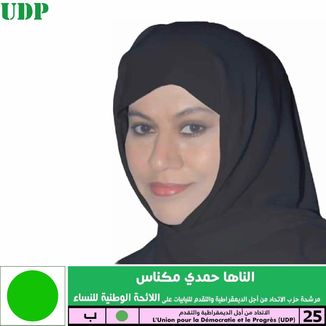 اليوم تطل معالي الوزيرة والسياسية الناها بنت حمدي ولد مكناس على المشهد السياسي مرشحة على رأس اللائحة الوطنية للنساء عن حزبها الاتحاد من أجل الديمقراطية والتقدم UDP تحمل الرقم 25 على هذه اللائحة، وهي تعتمد على رصيد وافر من ثقة الجمهور الوطني بهذا المشروع السياسي الجامع الذي طالما كان محطة إجماع وطني، كما تعتمد على مسار مهني امتاز بالنظافة والنزاهة وعلى علاقات واسعة مبنية على الثقة والاحترام المتبادل وحب الخير للناس والسعي في خدمتهم و مصالحهم وتلبية مطالبهم. #المرابع_ميديا_