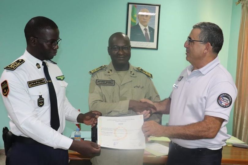 وقد تسليم المعني الشهادة من ممثل عن السفارة الفرنسية في نواكشوط، بحضور المفوض الرئيسي انجاي حسينو مدير التكوين والأشخاص في الإدارة العامة للأمن الوطني.