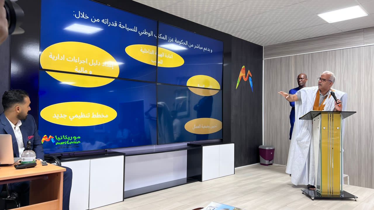 نظم المكتب الوطني للسياحة لقاءا تشاوريا في مبانيه ضم إضافة لطواقم المكتب، اتحادية السياحة و اغلب مهنيي القطاع والفاعلين فيه, وقد كان هذا اللقاء فرصة سانحة استعرض خلالها المدير العام للمكتب الوطني للسياحة السيد محفوظ ولد الجيد حصيلة ثلاث سنوات من العمل الواعي والدؤوب ابتداءً من التنظيم البنيوي للمؤسسة مرورا بتعبئة الموارد المالية والاستثمار في الموارد البشرية والتخطيط المحكم للمشاركات في المعارض الدولية والمحلية والتواجد الدائم في اماكن التقاء العرض والطلب في مجال السياحة في اهم التظاهرات السياحية العالميةوالمحلية واستهداف اسواق جديده والحرص علي الأسواق التقليدية والتنسيق الوثيق مع الفاعلين السياحيين الوطنيين وهو ما اعاد الثقة بين الفاعلين الخصوصيين والعموميين في القطاع وانعكس بشكل ايجابي على مستوى تسويق البلد كوجهة سياحية وتزايد اعداد الوافدين بشكل مضطرد . بدوره اشاد رئيس اتحادية السياحة و امينها العام وبقية المتدخلين بما تم إنجازه حتى الآن رغم المعوقات مأكدين ثقتهم واستعدادهم للشراكة مع المكتب الوطني للسياحة في سعيه الجاد للنهوض بالقطاع.