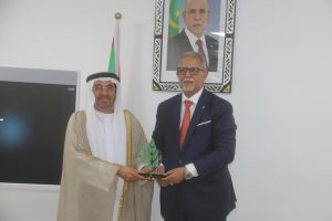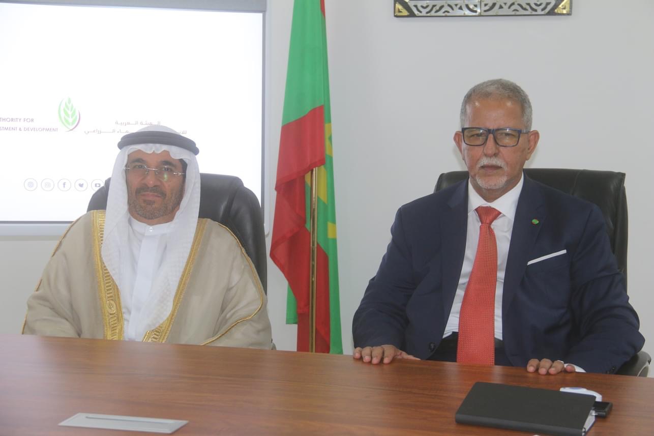 رئيس الهيئة العربية للاستثمار والإنماء الزراعي السيد محمد عبيد المزروعي أكد في كلمته باللقاء علي الاهتمام الذي توليه الهيئة بالتعاون بينها والوزارة وقدم عرضا عن المشاريع التي تنفذها هيئته في موريتانيا.