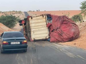 وتظهر الصور سقوط شاحنة في منعرج المتيسر الواقع على طريق الأمل على بعد 25 كيلومترا من مدينة بتلميت، ما تسبب في انسداد الطريق بشكل جزئي.