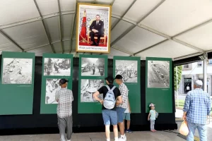 وأضاف المصدر ذاته أن “هذا المعرض الذي يضم 54 لوحة يؤرخ للتلاحم بين العرش العلوي المجيد والشعب المغربي في معركة الكفاح الوطني لنيل الحرية والاستقلال، كما يتوخى المساهمة في الحفاظ على الجزء من الذاكرة الذي يتعلق بعودة الملك الراحل محمد الخامس من المنفى، والتضحيات الجسام التي مكنت من التحرر من قيود الاستعمار والانكباب على بناء صرح مؤسساتي وطني قوي ودولة مغربية حديثة”.