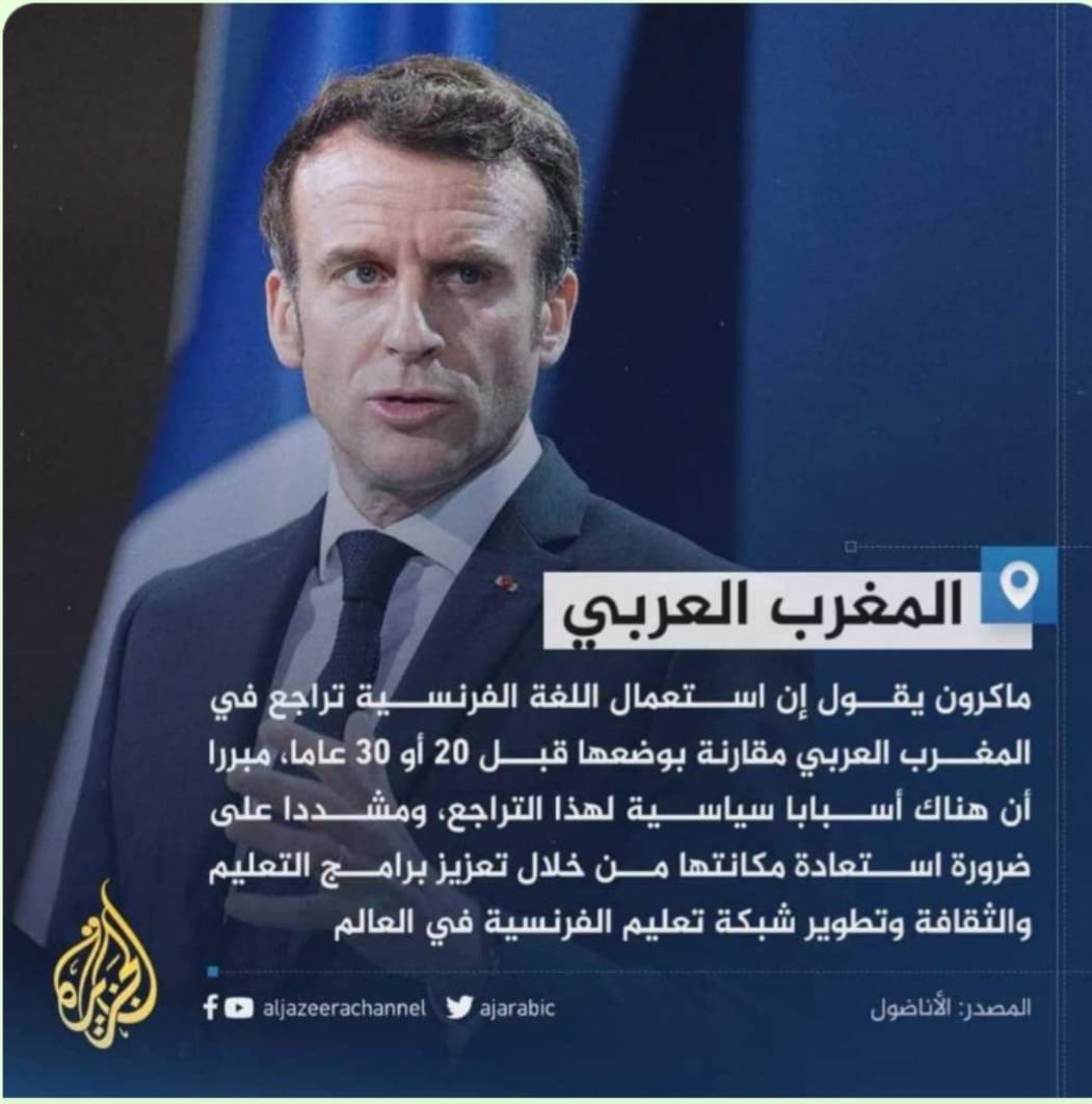 فإن الرئيس الفرنسي ماكرون نفسه قد أثار علي مستوي قمة المنظمة الدولية الفرنكفونية المنعقدة أواخر العام الماضي في تونس تحت شعار : التواصل في إطار التنوع و التكنولوجيا الرقمية كرافد للتنمية و التضامن في الفضاء الفرنكفوني –