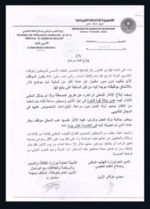 وألزمت الوزارة المعنيين بالالتحاق بعملهم خلال 72 و من لم يلتحق بعمله فسيتم فصله من الوظيفة العمومية نهائيا ..