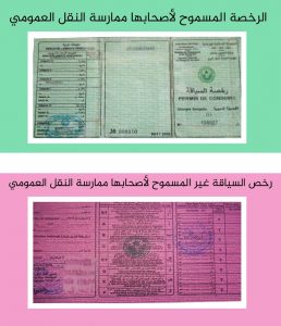 ستجدون مرفقا يوضح صور الرخص المسموح لأصحابها بممارسة النقل العمومي وتلك الممنوع على أصحابها ممارستهم مهما يكن حاملها.