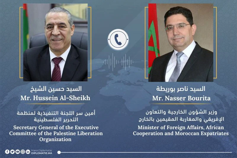 وتلقى وزير الشؤون الخارجية والتعاون الإفريقي والمغاربة المقيمين بالخارج، ناصر بوريطة، اتصالا هاتفيا من أمين سر اللجنة التنفيذية لمنظمة التحرير الفلسطينية، حسين الشيخ، حيث جرى الحديث والتشاور حول آخر التطورات في المنطقة، في ضوء الاعتداءات الإسرائيلية المتواصلة على قطاع غزة.