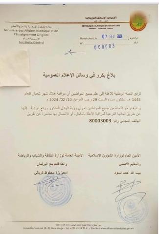 دعت لجنة مراقبة الأهلة كافة المواطنين لتحري رؤية هلال شهر شعبان 1445 مساء السبت القادم.