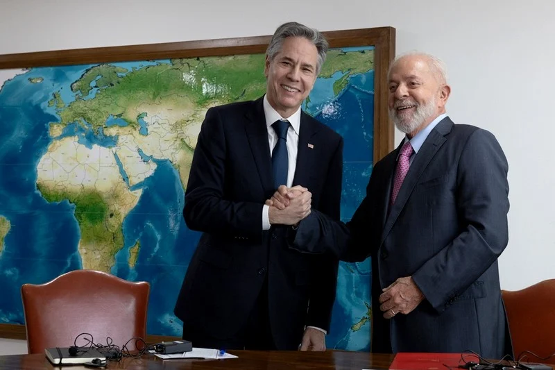 ظهرت خريطة المملكة المغربية الشقيقة كاملة مشمولة بالأقاليم الجنوبية ودون وضع “الخط الوهمي” الذي يفصل المملكة عن أراضيها التاريخية في مكتب الرئيس البرازيلي لولا دا سيلفا، حين استقبل، أمس الأربعاء، أنطوني بلينكين، وزير الخارجية الأمريكية، حسب صورة نشرها هذا الأخير في حسابه على موقع “إكس” (تويتر سابقا).