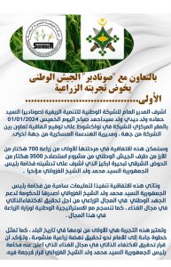 أشرف المدير العام للشركة الوطنية للتنمية الريفية (صونادير) السيد حماده ولد ديدي ولد سيد أحمد الخميس 01/01/2024 بالمقر المركزي للشركة في نواكشوط على توقيع اتفاقية تعاون بين الشركة من جهة ، ومديرية الهندسة العسكرية من جهة أخرى.