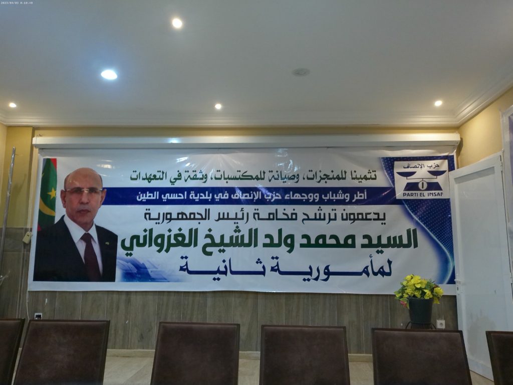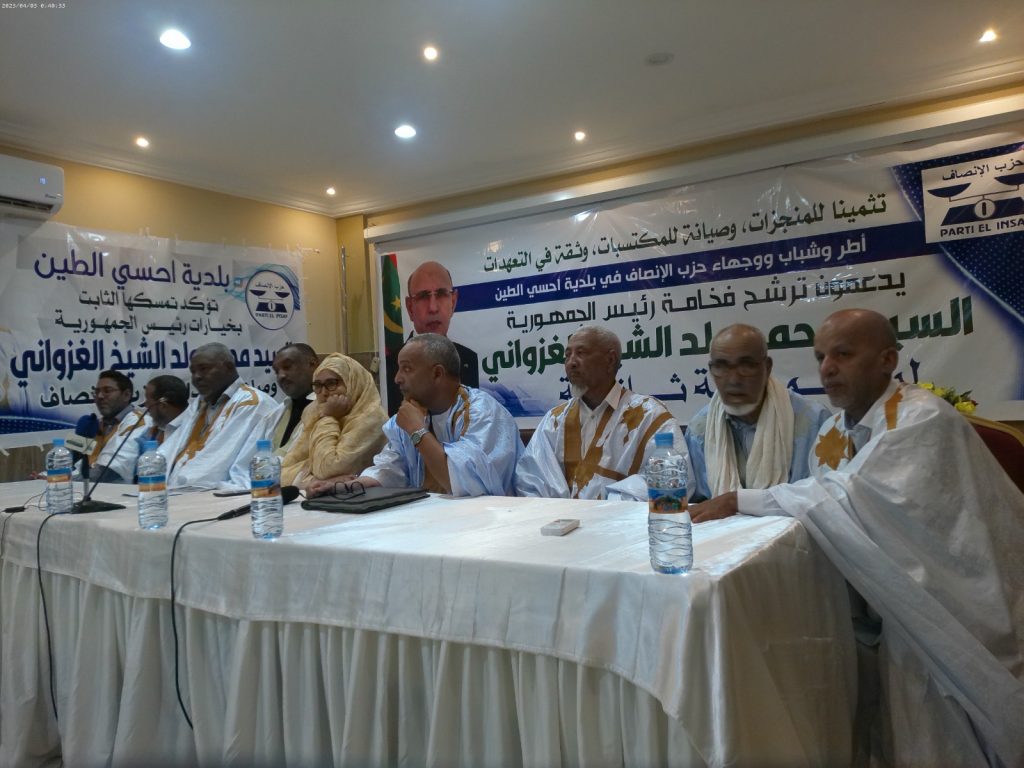 نظم أطر وساكنة بلدية أحسي الطين التابعين لحزب الانصاف مساء الأحد بفندق موري سانتر؛ مبادرة داعمة لترشيح رئيس الجمهورية محمد ولد الشيخ الغزواني لولاية ثانية.
