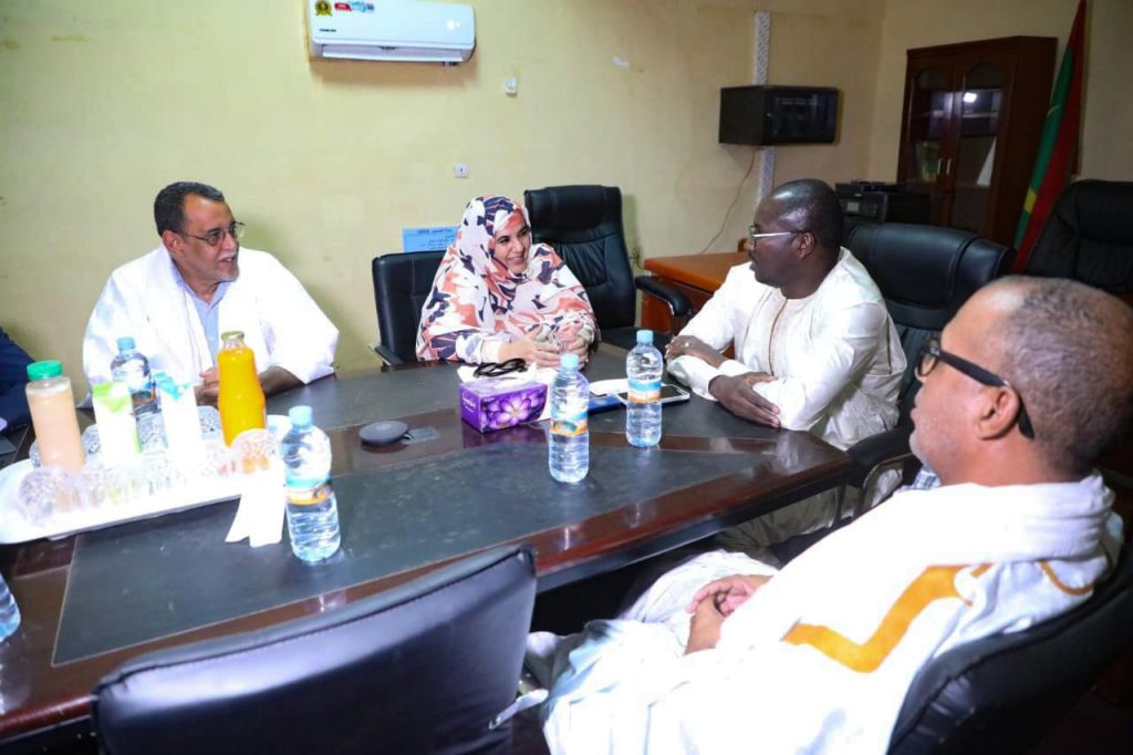 في إطار زيارة الإطلاع و التفقد التي تقوم بها المدير العامة لشبكة قنوات الموريتانية السيدة السنية سيدي هيبه و وفد من أطر القناة لولايات الشرق حط الوفد الرحال أول أمس في مدينة لعيون عاصمة ولاية الحوض الغربي وبدأ باجتماع مع والى الحوض الغربي في مكتبه.