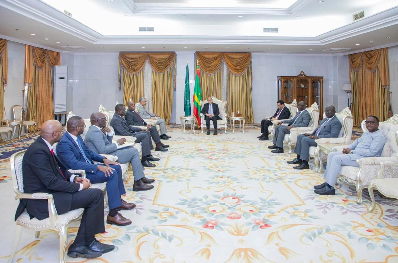 التقى رئيس الجمهورية محمد ولد الشيخ الغزواني، مساء اليوم الاثنين بالقصر الرئاسي بانواكشوط وفدا من رؤساء المؤسسات المالية والبنوك الإفريقية.