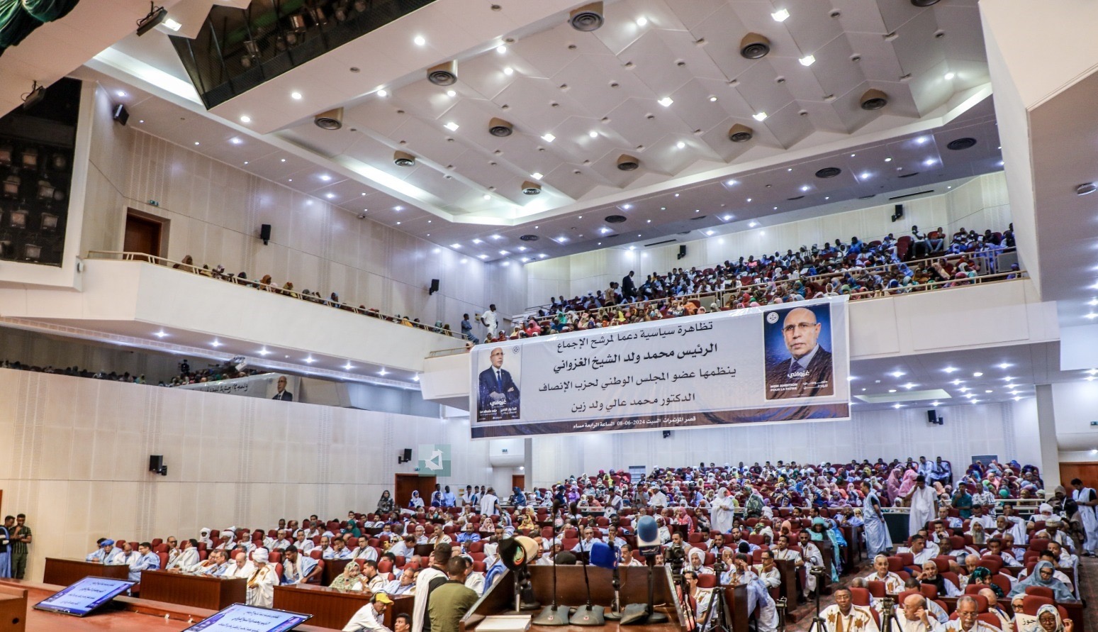 نظم عضو المجلس الوطني لحزب الإنصاف، الدكتور محمد عالي ولد زين، مساء اليوم السبت، في قصر المؤتمرات، تظاهرة داعمة لترشح الرئيس محمد ولد الشيخ الغزواني، شهدت حضورا كبيرا لأطر وناشطي الحزب، بينهم وزراء ومسؤولون وقياديون فيه.
