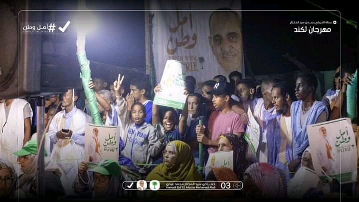 وخاطب المرشح حمادي ولد سيدي المختار الشباب الحاضر قائلا “بلدكم يحتاج إلى التغيير وعليكم المساهمة فيه والتحرك من أجله، بلدكم يعاني الظلام والعطش والتخلف الاقتصادي، ومستوى البطالة وصل 28%، وتنعدم فيه البنية التحتية ولا توجد الطرق، وهذا يتطلب التحرك بسرعة