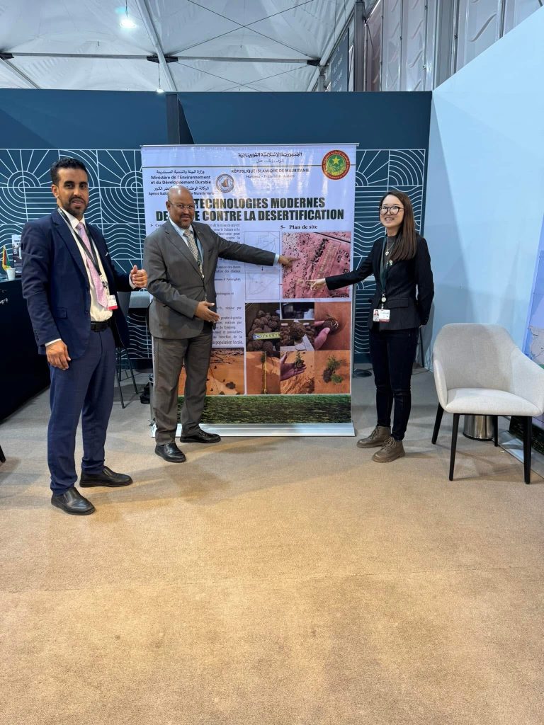 استعرض المدير العام التجربة الموريتانية في مكافحة التصحر، مسلطاً الضوء على فرص الاستثمار والتعاون المتاحة، ومؤكداً التزام الحكومة الموريتانية بتعزيز هذه الجهود. وتم الاحتفاء باستخدام موريتانيا لتقنية البذر الجوي منذ سنوات، والتي طُوِّرت مؤخراً بفضل التعاون مع شركة “سينواي فورست”، عبر دمج تقنيات متقدمة مثل كرات البذور والطائرات المسيرة.