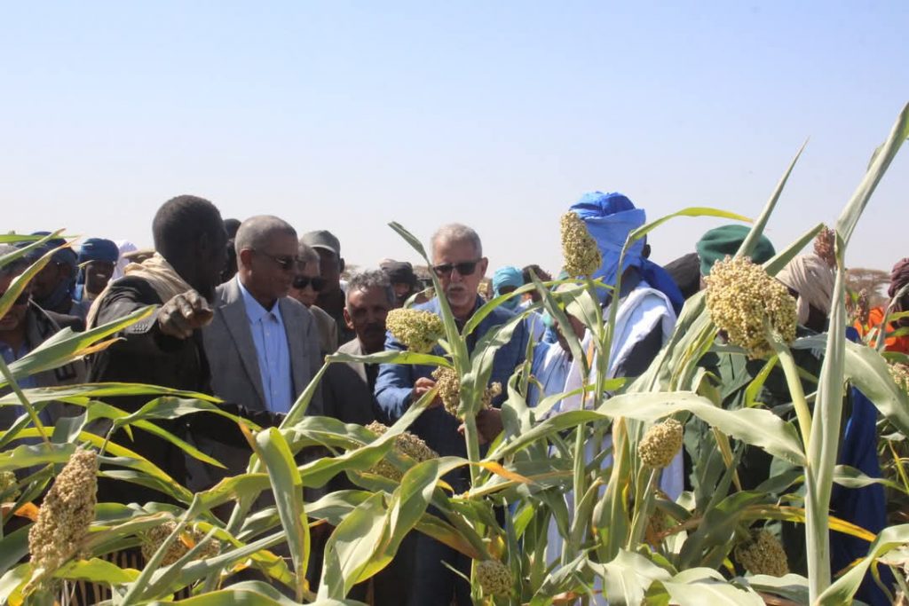 معالي الوزير افتتح زيارته بسد “فيله” الذي تم انجازه في إطار مكونة الزراعة من برنامج صمود المجموعات المحلية الهشة في ولاية الحوض الشرقي، حيث اطلع على المساحات المزروعة في السد، وحاور المزراعين حول واقع الزراعة بالسد والنتائج المنتظرة تحقيقها في حصاد الحملة الخريفية.