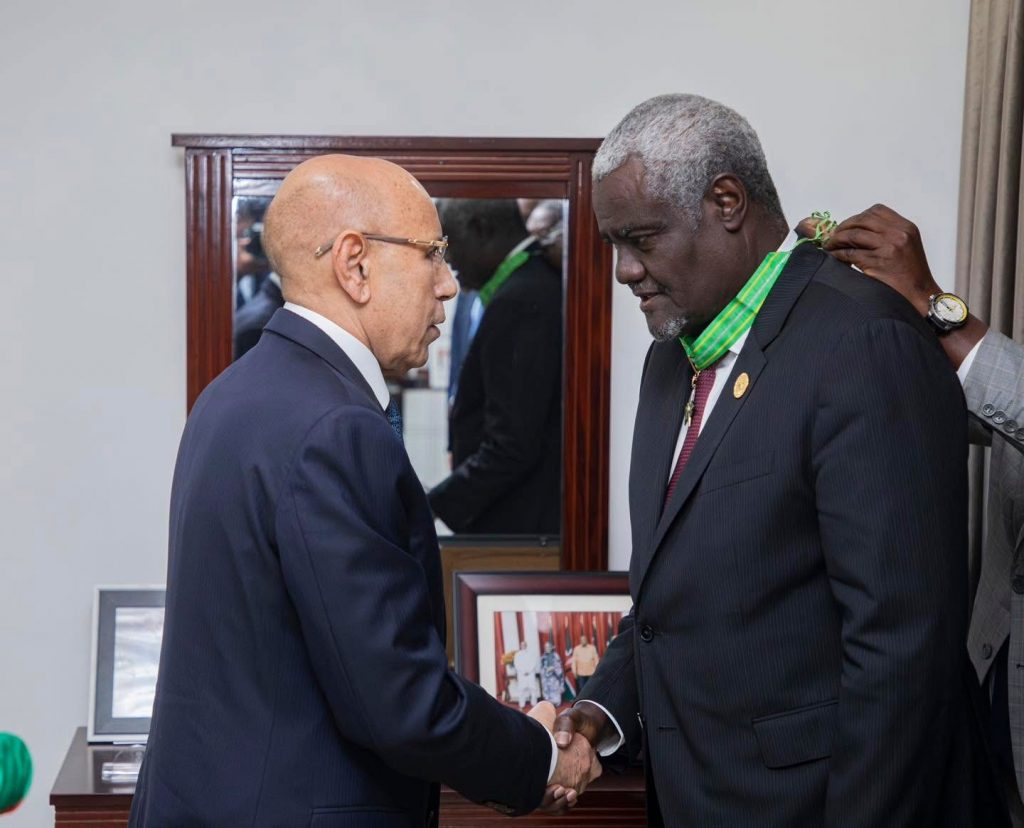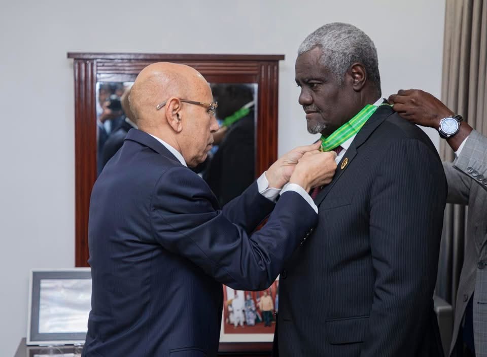 وشح رئيس الجمهورية، السيد محمد ولد الغزواني، مساء اليوم في مقر السفارة الموريتانية في أديس أبابا (أثيوبيا) ، رئيس مفوضية الاتحاد الإفريقي، المنتهية ولايته سعادة السيد موسى فكي محمد، ومجموعة من كبار موظفي الاتحاد الإفريقي، تقديرا للجهود الكبيرة التي بذلوها من أجّل افريقيا طيلة فترة توليه الرئاسة الدورية للاتحاد الإفريقي.